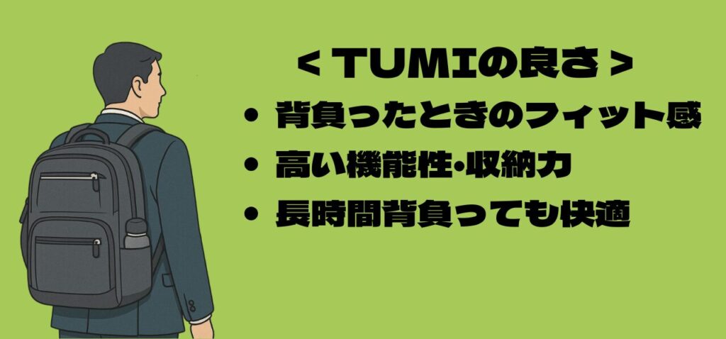 他のバックパックを試して「何かが足りない」と感じている方には、ぜひ一度TUMIを手に取って、その快適さを体感していただきたいです。