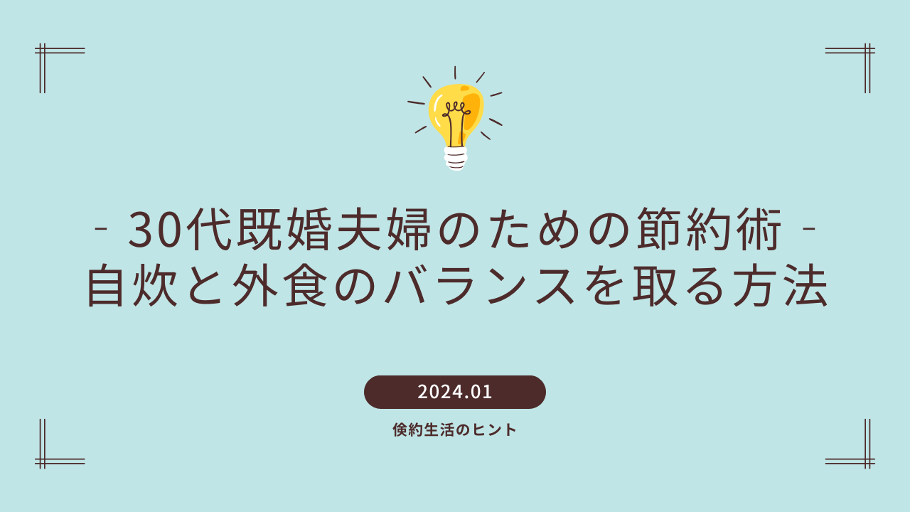 我が家(30代共稼ぎ夫婦)における「自炊と外食のバランスを取る方法」の具体例を紹介します。