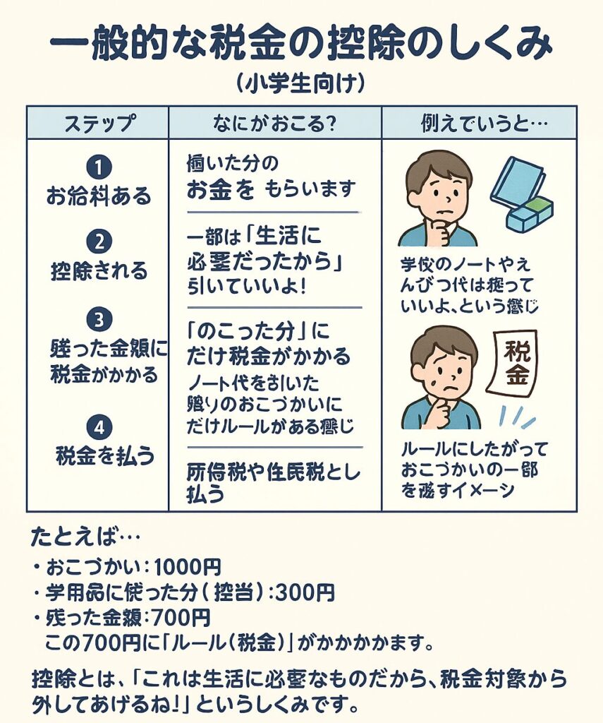 控除とは、「これは生活に必要なものだから、税金の対象から外してあげる」という仕組みです。