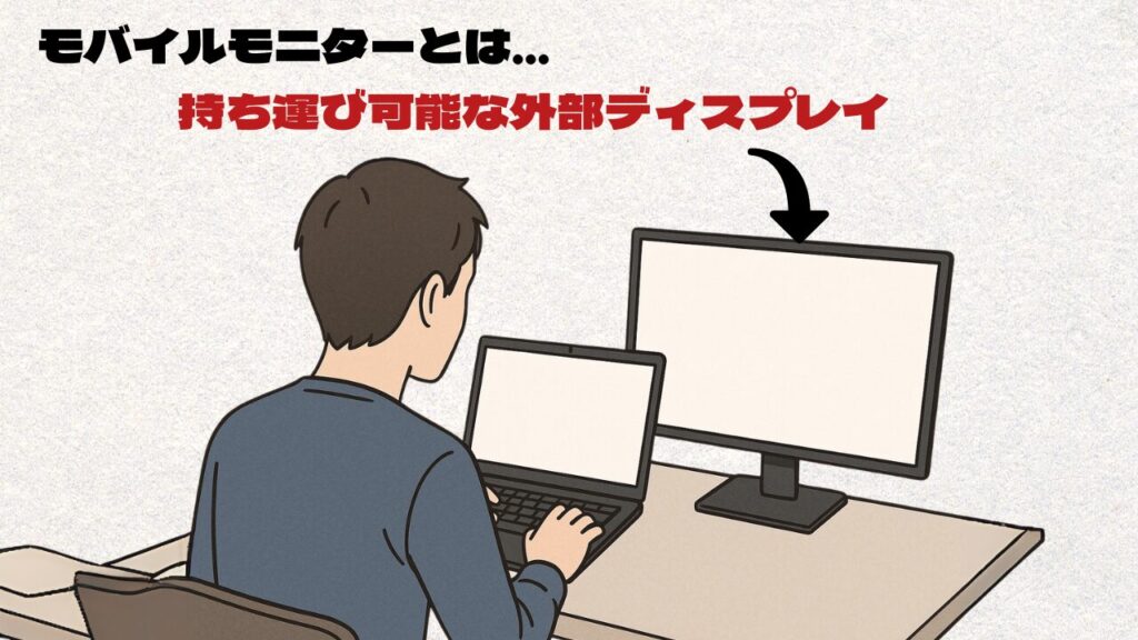 モバイルモニターとは、持ち運び可能な外部ディスプレイのことで、ノートパソコン、スマートフォン、タブレットなどに接続して画面を拡張したり、別のディスプレイとして利用したりするためのデバイスです。